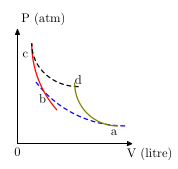 Problemler: n mol ideal gaz için Şekil 13-1 de gösterilen Carnot çevriminde bilinenler sırasıyla şunlardır: \(V_a\), \(V_c\), \(P_b\) ve \(T_a\), ayrıca ab yolu izotermal sıkıştırma, bc yolu adyabatik sıkıştırma, cd izotermal genleşme ve da adyabatik genleşme. Buna göre, ideal gaz yasası ve adyabatik durumda sıcaklık-hacim ve basınç-hacim denklemlerini kullanarak bilinmeyenleri hesaplayın.